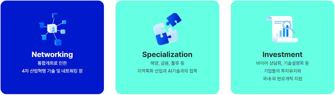 컨퍼런스 : AI, CLOUD, 양자, 스마트 시티, 정보보안 컨퍼런스 등 프로그램 : 국내외 바이어 상담회, 참가사 기술/제품 발표회, IR 데모데이 등