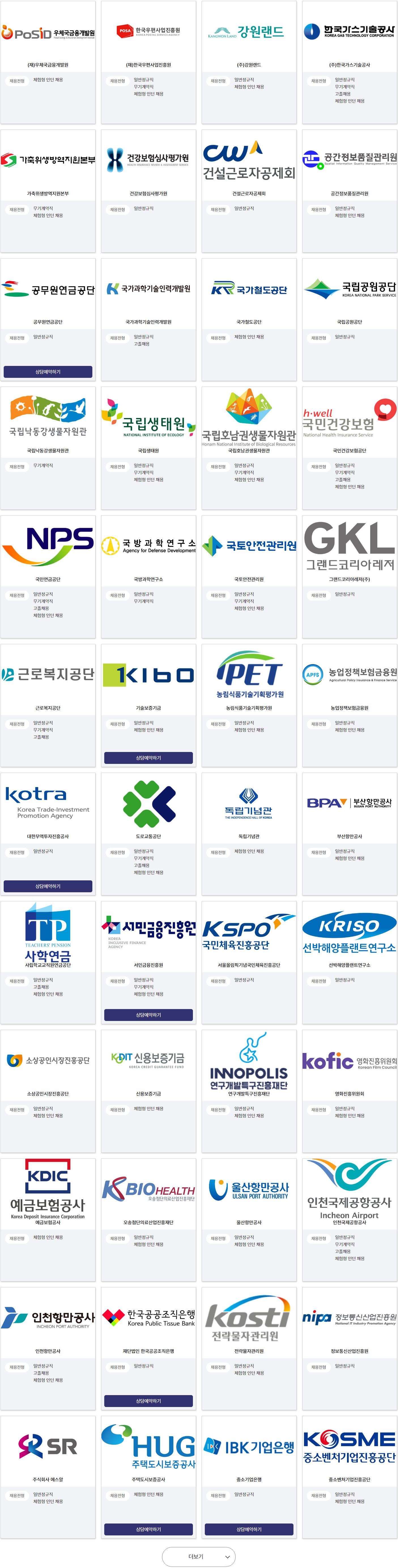 채용정보: 메뉴 ‘채용정보관’ 확인 > 관심있는 기관 클릭 > 채용 정보 확인