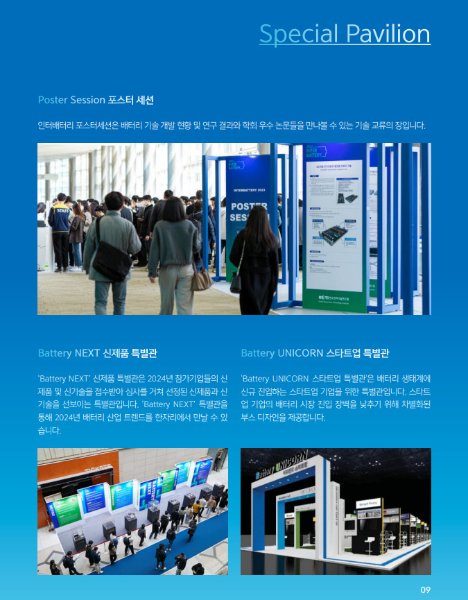 InterBattery는 Global Top 5 배터리 전문 전시회로, 이차전지, 소재/부품, 커패시터, 제조기기, 검사/측정장비, ESS, 폐배터리 재사용/재활용 등 이차전지 산업분야에 걸친 다양한 제품을 직접 보고 체험하실 수 있는 최고의 이차전지 비즈니스 플랫폼입니다.